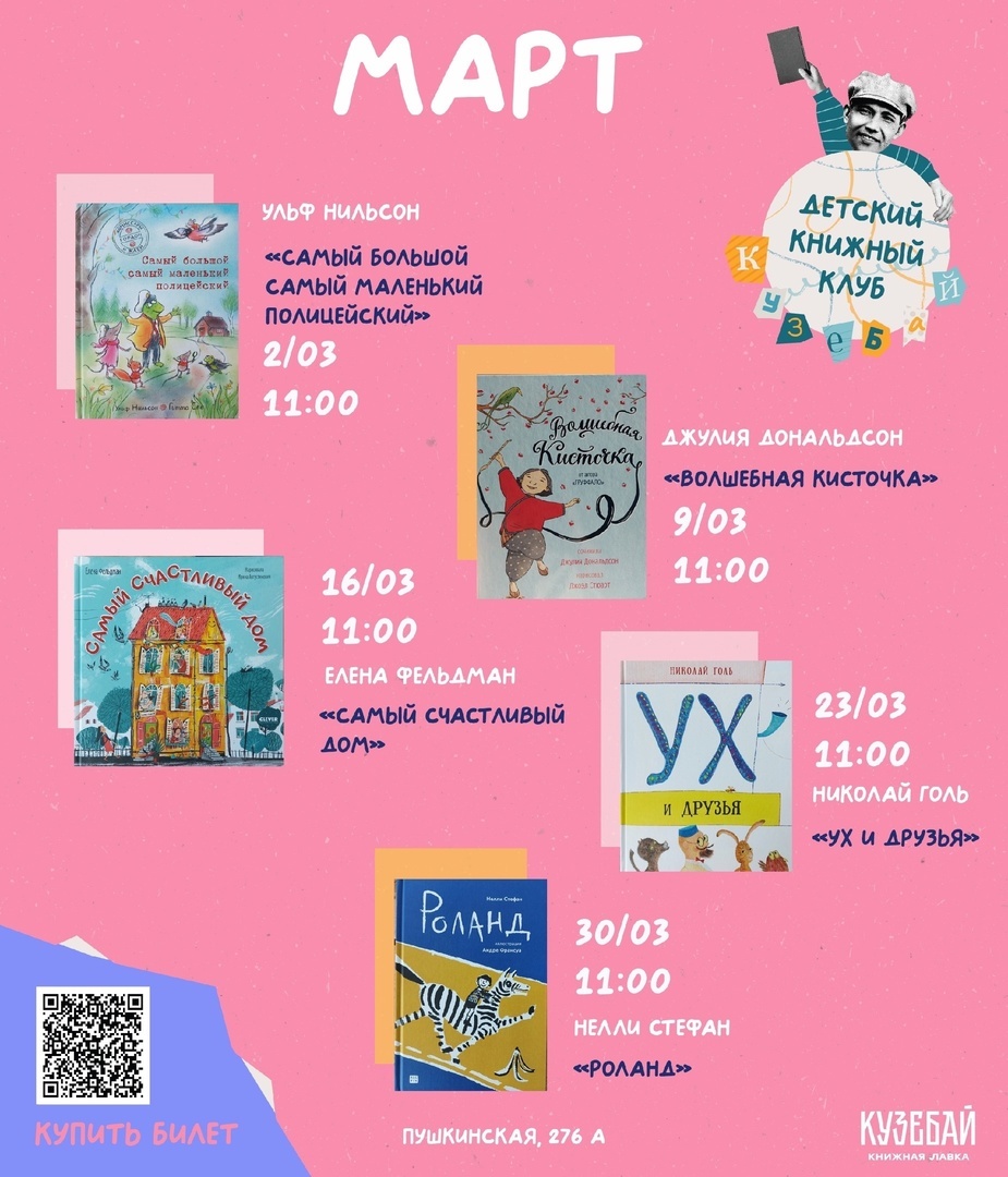 Мартовское расписание нашего детского книжного клуба!